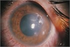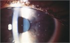 図15.3 アカントアメーバ角膜炎.リング状角膜浸潤.