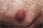 膿疱は発赤と硬結を伴う圧痛のある混濁した小水疱として出現して,時に上行性リンパ管炎の原因となる.
