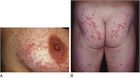 )に認める.これは,いわゆる「sea lice」〔訳注:チンクイ,ゾエア〕が活動している期間に,カリブ海またはメキシコ,フロリダ,ロングアイランド等で海水浴をした数時間後に発症する.皮膚が露出した部分には病変がみられない.症状は水中でチクチクとした痛みを感じることから始まり,水着を着たままシャワーを浴びると,かゆみや灼熱感が顕著になる.症状は通常数日で自然に消失する.しかし,一部の患者(特に小児では)は,曝露した約10日後に重度な遅延型過敏反応を生じることがある.この発疹は,病変がなかった部位にも広がり,強いかゆみや倦怠感,発熱,悪寒,吐き気,頭痛を訴えることがある.流行期は3~8月で,ピークは5月である.
