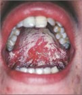 This chapter reviews oral candidiasis or thrush. Patients are typically infants or older patients with either poor oral hygiene, diabetes, a hematologic malignancy, an immunodeficiency, or on antibiotic, cytotoxic or steroid therapy. Mild cases may be treated with topical nystatin suspension. More significant cases in infants and adults should be treated with oral fluconazole. Thrush may be the first sign of HIV infection.