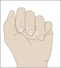 A Boxer’s fifth metacarpal fracture typically results from a punch against a solid object. A careful examination of the skin and soft tissue is mandatory, and any laceration should raise suspicion for a human bite (fight bite). In addition, clinical examination of finger cascade and evaluation for a rotational deformity are critical. Although there is mixed literature to support this, classic teaching is that up to 40 degrees of volar angulation does not require reduction. Fractures with greater angulation or a rotational deformity should have a reduction prior to splinting. Splinting is typically an ulnar gutter with the fourth and fifth 90 degrees of flexion at the PIP; however, buddy taping and padding may be appropriate. Consider psychiatric support/anger management if appropriate.