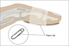 A patient arrives with a tender fingertip injury with a noticeable deformity. There is a history of a sudden resisted flexion of the distal interphalangeal (DIP) joint, such as when the fingertip is struck by a ball or jammed against a stationary object, resulting in pain and tenderness over the dorsum of the base of the distal phalanx. This injury can occur with relatively minor trauma (such as jamming a finger while reaching for a light switch in the dark) or even as a result of a direct blow to the dorsum of the finger. It may or may not be accompanied by swelling and ecchymosis over the DIP joint. When the finger is at rest or held in extension, the injured DIP joint remains in slight or moderate flexion (Fig. 106.1).